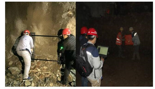 探地雷达方法是利用发射天线向地下介质发射广谱、高频电磁波,当电磁波遇到电性(介电常数、电导率、磁导率)差异界面时将发生折射和反射现象,同时介质对传播的电磁波也会产生吸收、滤波和散射作用。用接收天线接收来自地下的反射波并做记录,采用相应的雷达信号处理软件进行数据处理,然后根据处理后的数据图像结合工程地质及地球物理特征进行推断解释,对掌子面前方的工程地质情况(围岩性质、地质结构构造、围岩完整性、地下水和溶洞等情况)做出预测。