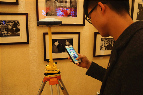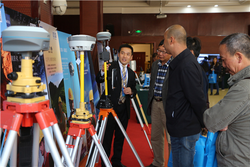 昆明分公司总经理罗国良(左一)向嘉宾介绍RTK新品