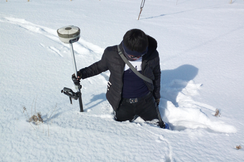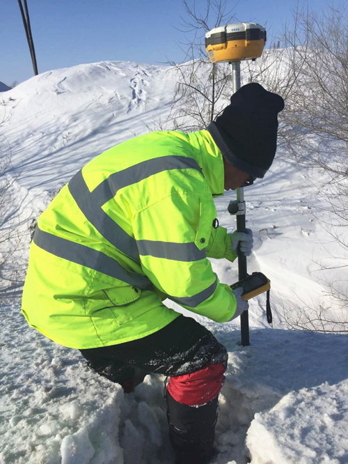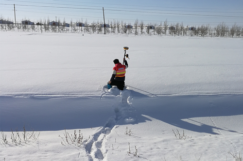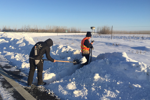 项目进行的一个多月里,不仅每天六七级的风成为了他们如影随形的“伙伴”,就连内陆极其少见的风吹雪也“拜访”了五六回了。面对恶劣的天气,且最低温度达零下20度,现场所使用的中海达RTK作业正常,不仅为此次项目的顺利进行提供了坚实的保障,而且给队友们吃下了一颗“定心丸”。这不,19号,我们的测绘队员不惧风雪,坚持作业在S221上。
