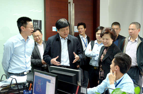28日下午,国家测绘地理信息局(下称国家局)副局长李朋德到访中海达,广东省国土资源厅副厅长李俊祥,国家局科技与国际合作司司长李烨、科技处处长郑作亚等人同行。中海达总裁徐峰、测绘公司总经理鲍志雄等高管接待参观。