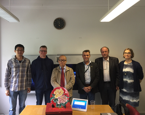 胡炜副总裁(左三)与FGI所长Jarkko koskinen 教授(右三)等人合影