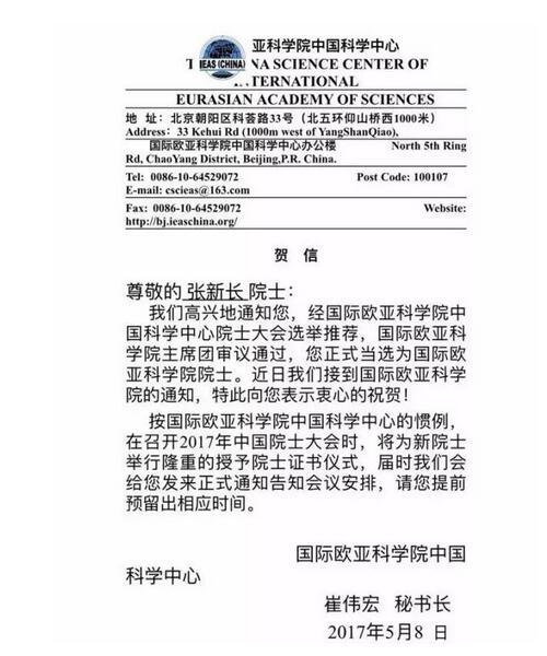 热烈祝贺中山大学张新长教授当选国际欧亚科学院院士!