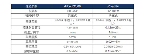 iFlow RP600与TRDI RiverPro产品主要性能参数对照表
