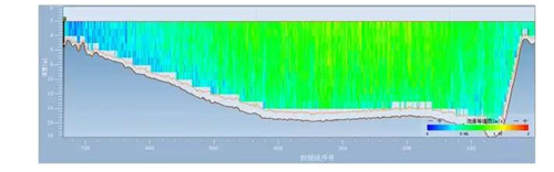 安装完毕进入试验过程。船航行至待测水域,选择测量的起始点和结束点。起始点和结束点要求该位置数据质量良好,且有效单元层数不小于两层。