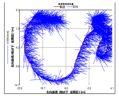 测次1中,TRDI RiverPro与iFlow_RP600的导航图结果分别如图3-3和图3-4所示: