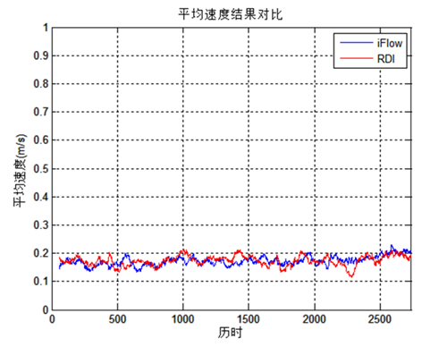测次2中TRDI RiverPro与iFlow_RP600平均速度对比图如图4-3所示: