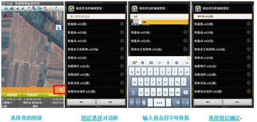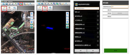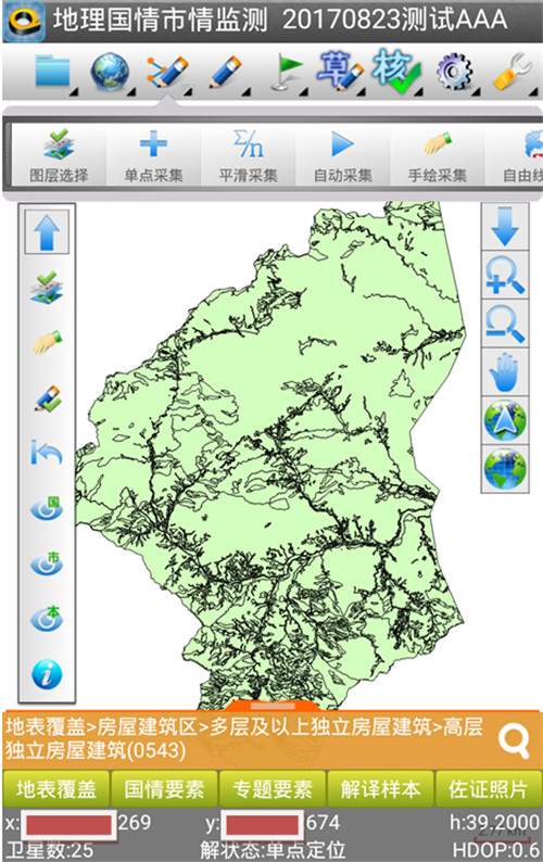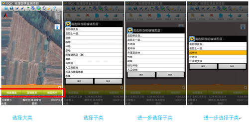 核查图斑的核查工作主要包含:确定图层分类及属性录入两个工作。现场需要对核查图斑进行核查时,若图斑与实地坐标不符合,则直接删除掉,按普查数据进行坐标及属性的全新采集即可;若相符,则需要先选择图斑对象,然后进行图层的分类确定,之后系统将根据确定好的图层内容,自动调出需要录入的属性字段列表,待录入完成后保存即可。此时已核查的图斑将在地图上消息,取而代之的是目标图层会新增一空间对象。