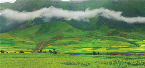 文字说明:七月是祁连山风光最美的季节,而卓尔山更是这个季节最出彩的画卷。红色的山上布满了青青的绿草,盛开着金黄的油菜花。还有那大片的松树林亭亭玉立。这些景色在云雾中时隐时现,朦朦胧胧如同进入仙界一般。