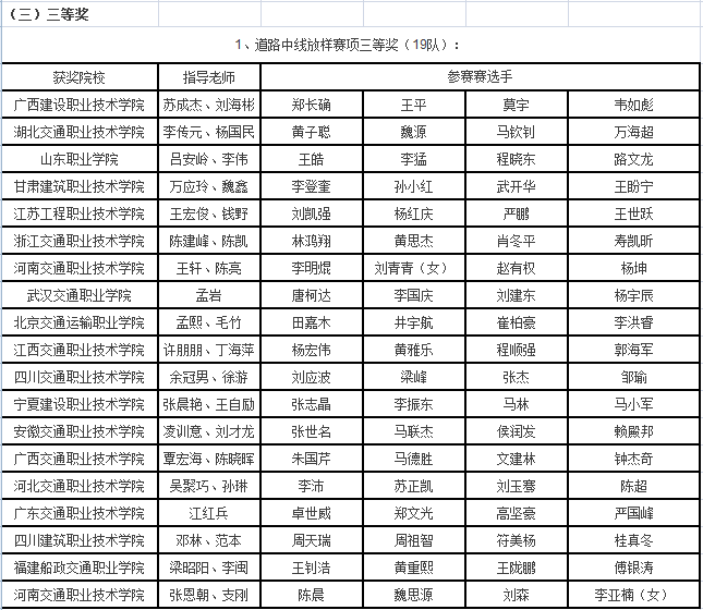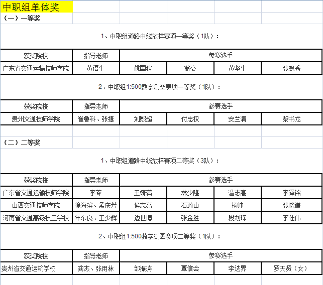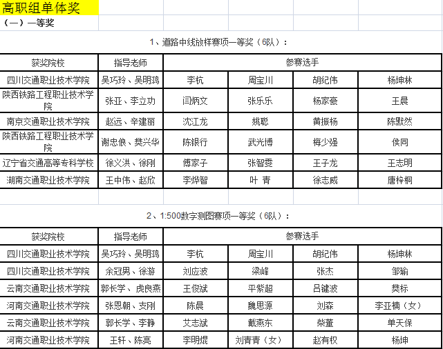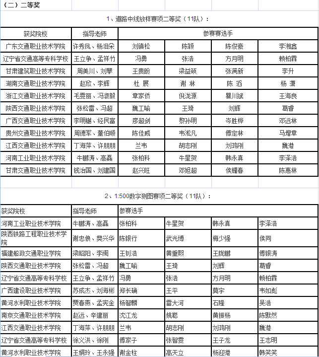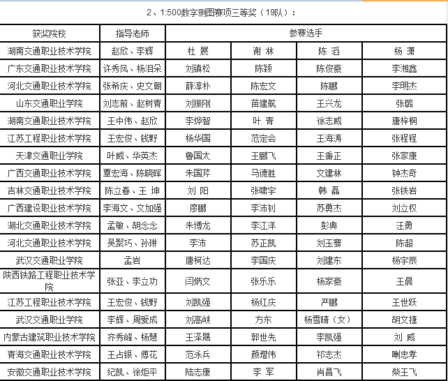 2017年全国交通运输职业教育“中海达杯”学生测绘技能大赛获奖名单出炉!