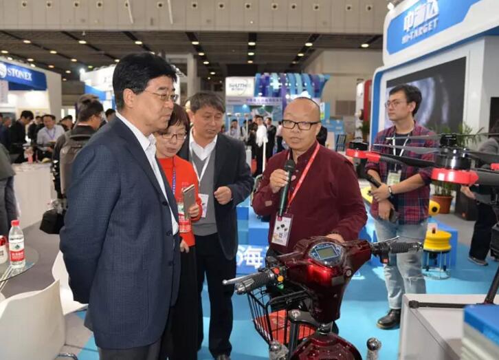 国家测绘地理信息局李维森副局长(左)莅临中海达展位,中海达胡炜副总裁向其介绍展品