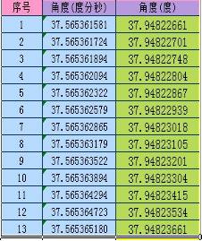 4.计算后的线路中桩坐标转换成经纬度。转换后的经纬度显示为度分秒,谷歌地球用的是度,我们再将度分秒转换成度。
