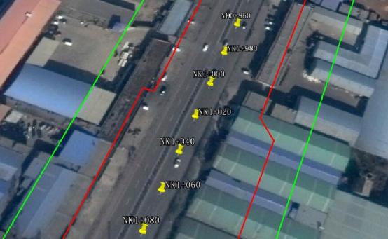 5.将转换后的经纬度画入谷歌地球中,就形成了本项目的线路中桩,依次用本方法绘制施工征地红线,绿化征地绿线,中桩里程桩号。