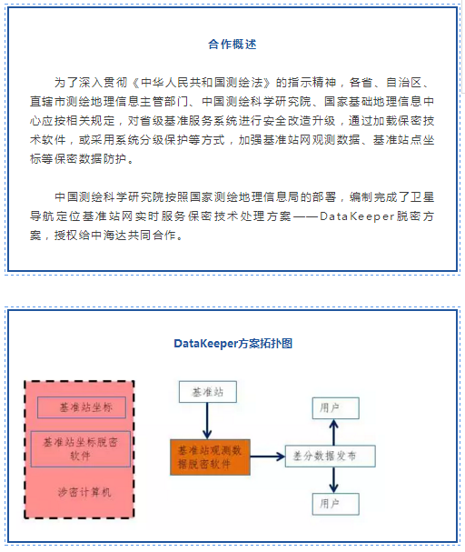 程鹏飞院长一行莅临中海达最重要的目的是按照国家测绘地理信息局部署,将中国测绘科学研究院编制完成的卫星导航定位基准站网实时服务保密技术处理方案——DataKeeper脱密方案授权给中海达共同合作。