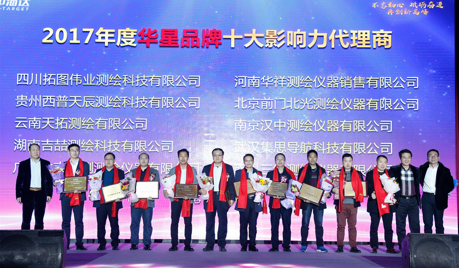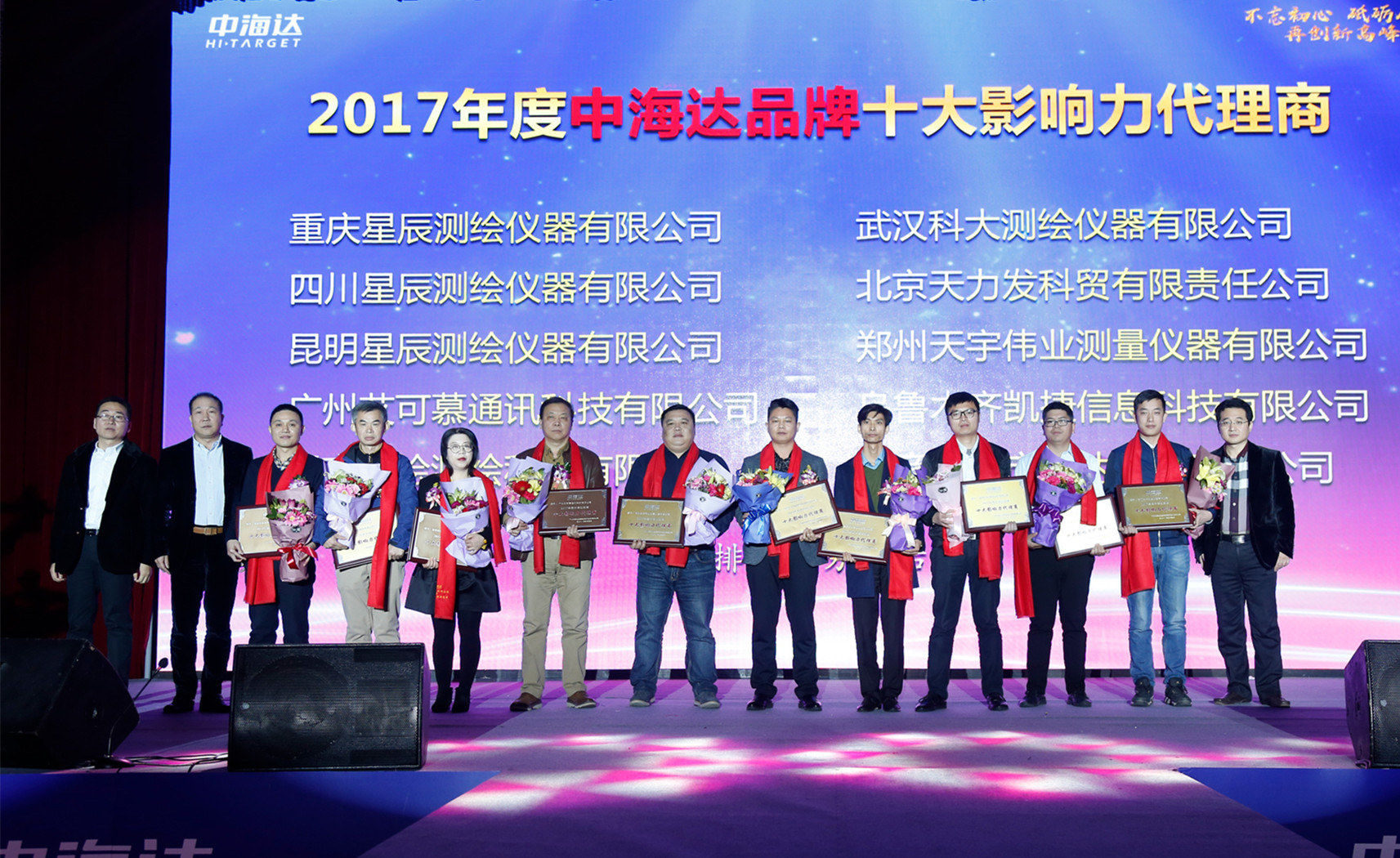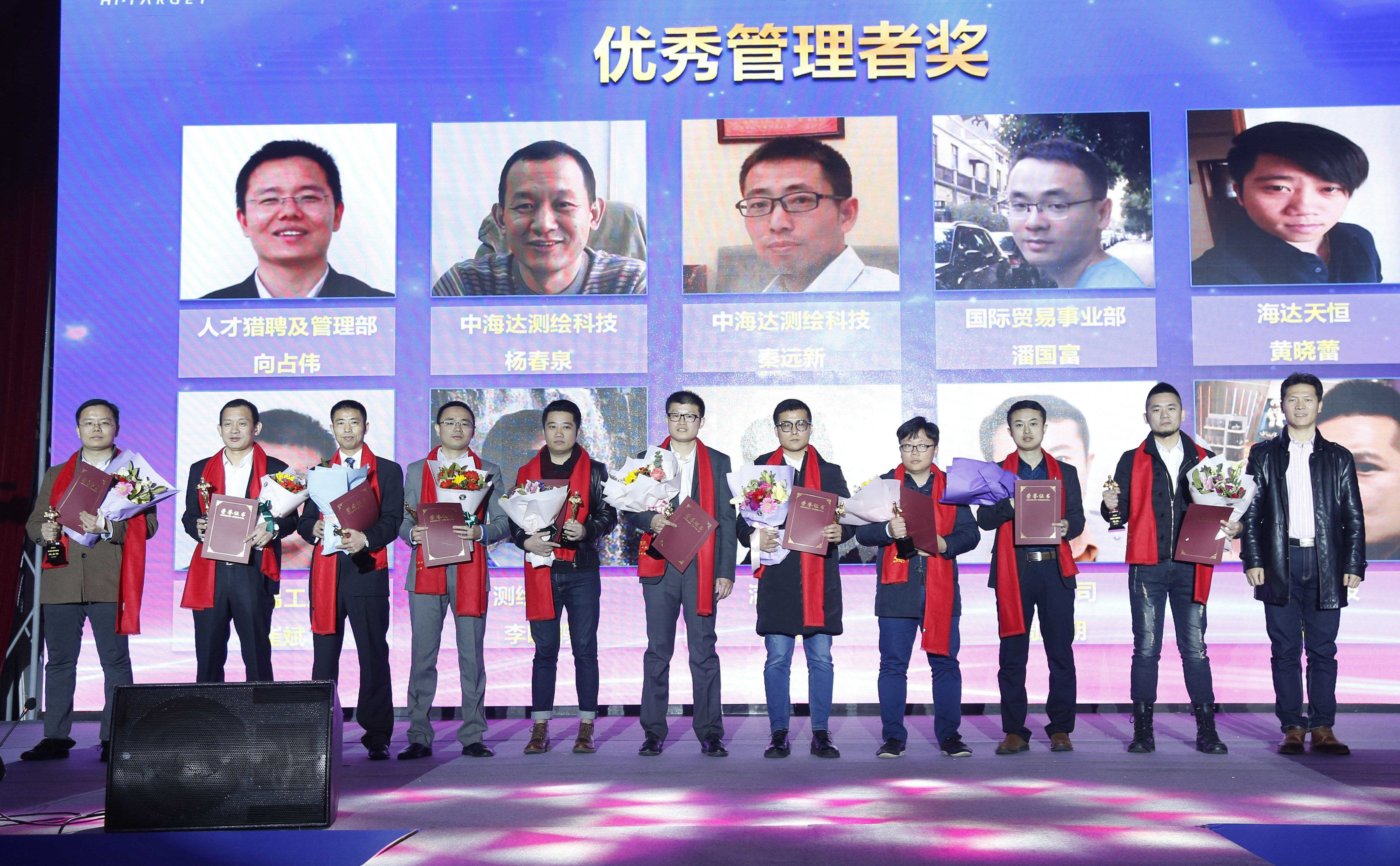 随后,年会进行了2017年度集团优秀员工、优秀管理者、优秀分公司、优秀子公司,以及2017年度国产RTK产品杰出贡献奖,海达天恒优秀大区奖,国贸销售冠军,直销销售冠军,中海达、华星品牌十大影响力代理商等个人和团队奖颁奖。