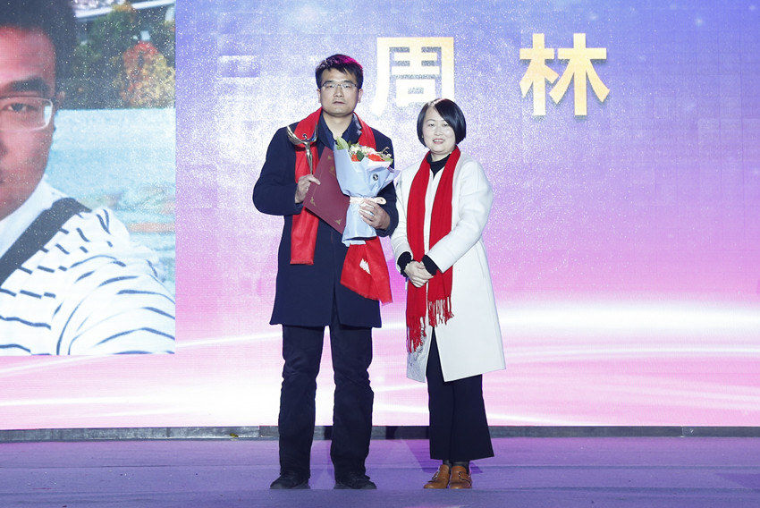 国际贸易事业部总经理徐玉红为年度国贸销售冠军周林颁奖
