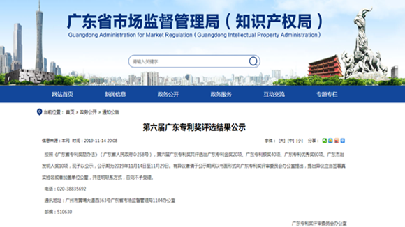 2019年5月,马兴瑞省长签发第258号广东省人民政府令,公布修订后的《广东省专利奖励办法》(以下简称《办法》),自2019年5月1日起施行。根据《办法》及其实施细则,第六届广东专利奖共评选出广东专利金奖20项、广东专利银奖40项、广东专利优秀奖60项、广东杰出发明人奖10项。
