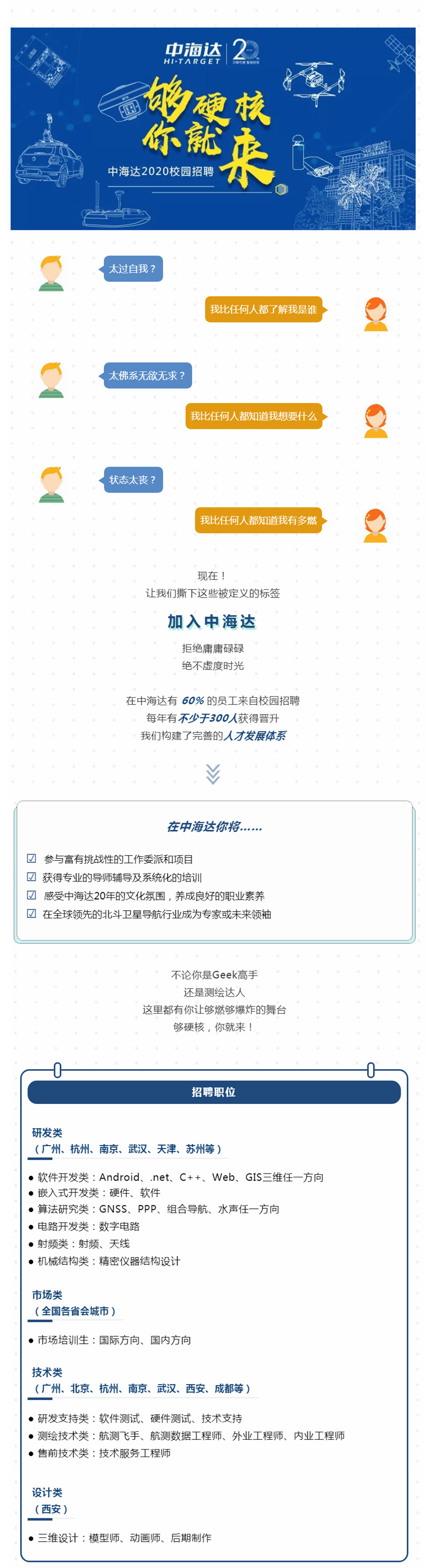 中海达2020校园招聘开始啦!够硬核,你就来!